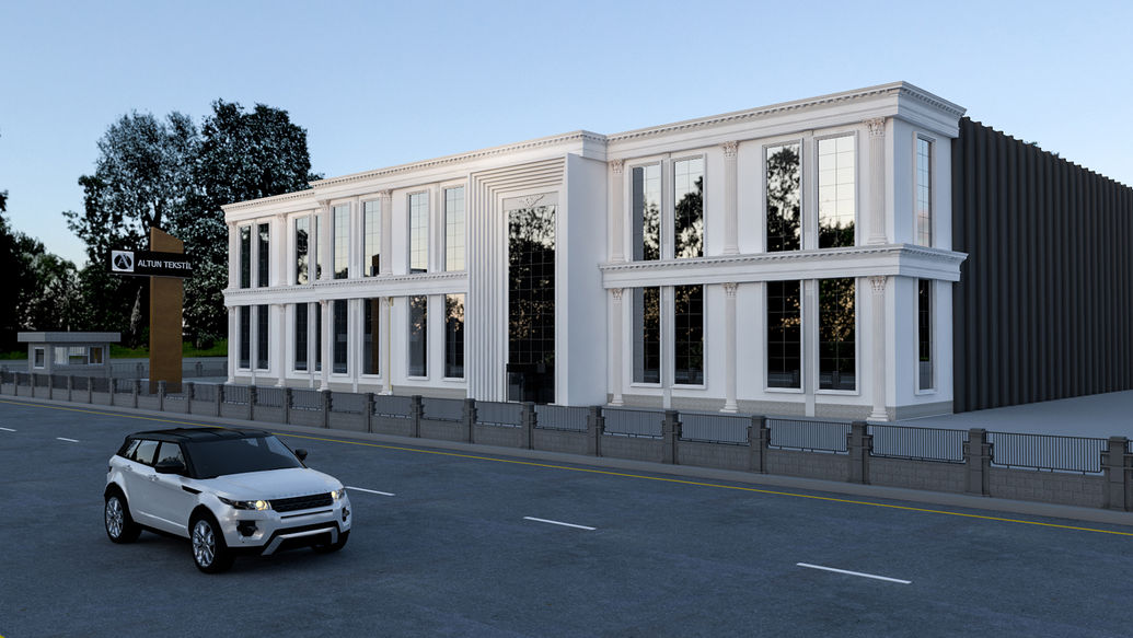 Altun Tekstil’in yönetim ofisi, firmanın üretim gücünü temsil eden yalın ve net bir mimari dille inşa edildi. Geniş kütle hacmi, cephede kullanılan endüstriyel malzemeler ve modüler kurgu; yapıya işlevsellik kazandırırken aynı zamanda estetik bir sadelik yaratıyor. Bina, organizasyon yapısı ile güçlü bir kurumsal ifade oluştururken çevresine uyumlu, dikkat çekici bir mimari duruş sergiliyor.