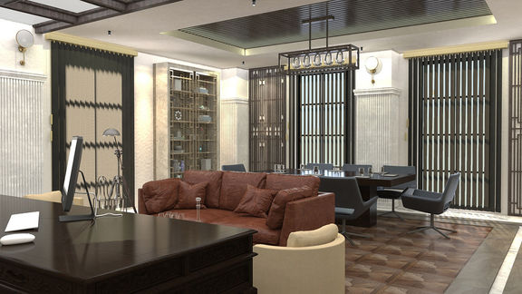 İç mekânda kullanılan sade renk paleti ve minimal malzeme geçişleri, çalışma alanlarında ferahlık ve dinginlik sunuyor. Yönetim ofisinin tüm kurgusu; karar alma, iletişim ve odaklanma süreçlerini destekleyecek biçimde planlandı. Fonksiyonel mobilya yerleşimi, kontrollü doğal ışık kullanımı ve net dolaşım hatları, günümüz ofis tasarımının modern ihtiyaçlarını karşılayacak nitelikte.
