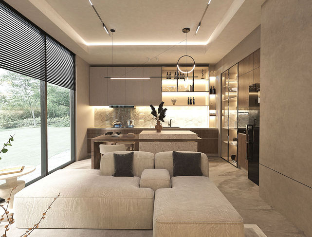 Kullanıcı alışkanlıklarını merkezine alan iç mekân tasarımı, gün ışığını en verimli şekilde içeri alan açıklıklarla kurgulanmıştır. Açık planlı yaşam alanları, fonksiyonel geçişlerle bölünmüş yatay akışkanlık sağlar. İç mekân malzemelerinde tercih edilen doğal dokular ve nötr tonlar, sakin bir atmosfer yaratırken K Villas, çağdaş yaşamın ihtiyaçlarına hem mimari hem de duygusal olarak yanıt verir.