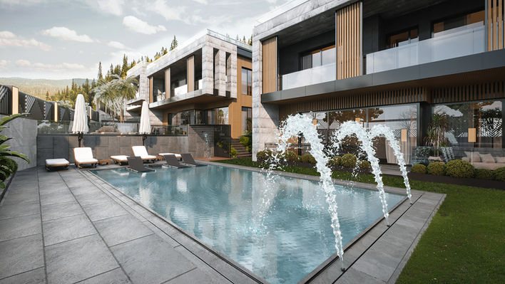 K Villas, aynı arazi üzerinde birbirinden bağımsız ama dil birliği taşıyan yaşam birimlerinden oluşan bir modern villa yerleşimidir. Proje, yatay düzlemde kurgulanmış yapı formlarıyla hem mahremiyeti hem de komşuluk ilişkilerini dengede tutan bir planlama anlayışına sahiptir. Her bir villanın kendi bahçesi ve özel giriş düzenlemesi, bireysel konforu ön plana çıkarırken bütüncül cephe dili projeye güçlü bir mimari karakter kazandırır.