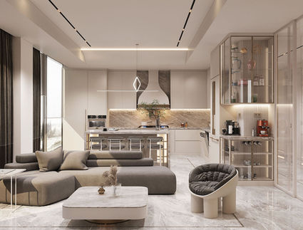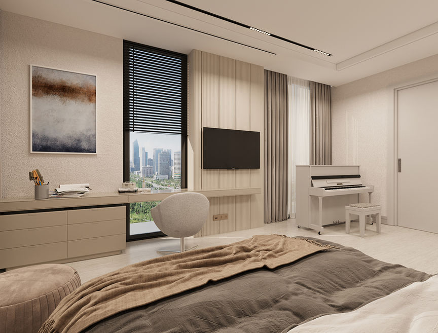 İç mekân düzeninde ise hem ferahlık hem de mahremiyet öne çıkıyor. Geniş cam açıklıkları, doğal ışığın gün boyu mekâna yumuşak biçimde süzülmesini sağlarken; iç planlamadaki akışkanlık, kullanıcı deneyimini sezgisel kılıyor. Fonksiyonelliği zarafetle buluşturan bu yaşam alanı, tasarımın sadece bir biçim değil, aynı zamanda bir his olduğunu kanıtlıyor.